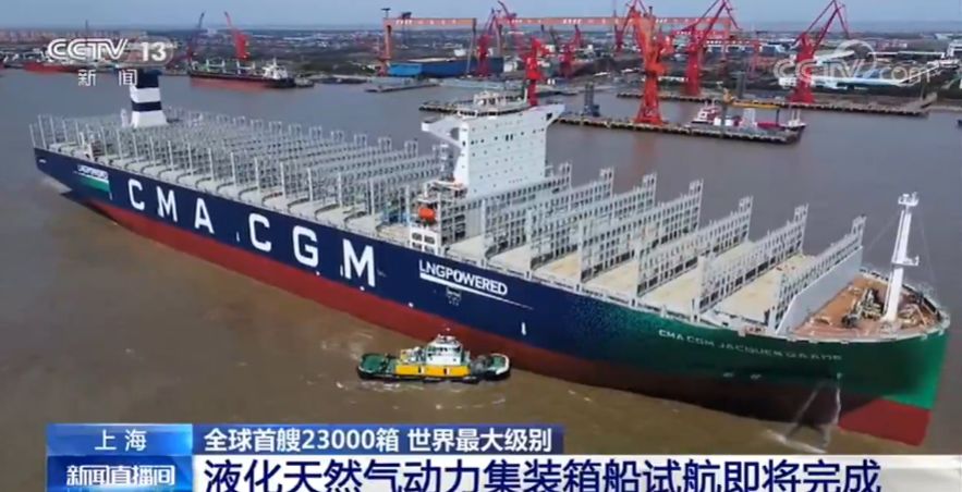 3月23日,由我国船舶企业制造的全球首艘23000箱液化天然气动力集装箱船,预计将完成自3月16日起开启的海上试航之旅。