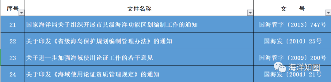 | 21 | 国家海洋局关于组织开展市县级海洋功能区划编制工作的通知 | 国海管字〔2013〕747号 | |