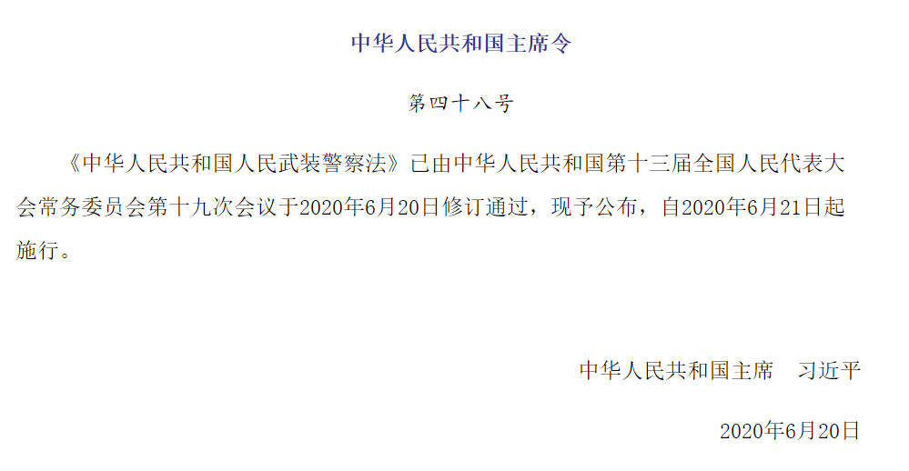 第四条 人民武装警察部队担负执勤、处置突发社会安全事件、防范和处置恐怖活动、海上维权执法、抢险救援和防卫作战以及中央军事委员会赋予的其他任务。第五条 人民武装警察部队应当遵守宪法和法律,忠于职守,依照本法和其他法律的有关规定履行职责。第六条 对在执行任务中做出突出贡献的人民武装警察,依照有关法律和中央军事委员会的规定给予表彰和奖励。对协助人民武装警察执行任务有突出贡献的个人和组织,依照有关法律、法规的规定给予表彰和奖励。第七条 人民武装警察部队实行衔级制度,衔级制度的具体内容由法律另行规定。第八条 人民武装警察享有法律、法规规定的现役军人的权益。第九条 人民武装警察部队由内卫部队、机动部队、海警部队和院校、研究机构等组成。内卫部队按照行政区划编设,机动部队按照任务编设,海警部队在沿海地区按照行政区划和任务区域编设。具体编设由中央军事委员会确定。第十条 人民武装警察部队平时执行任务,由中央军事委员会或者中央军事委员会授权人民武装警察部队组织指挥。人民武装警察部队平时与人民解放军共同参加抢险救援、维稳处突、联合训练演习等非战争军事行动,由中央军事委员会授权战区指挥。人民武装警察部队战时执行任务,由中央军事委员会或者中央军事委员会授权战区组织指挥。第十一条 中央国家机关、县级以上地方人民政府应当与人民武装警察部队建立任务需求和工作协调机制。中央国家机关、县级以上地方人民政府因重大活动安全保卫、处置突发社会安全事件、防范和处置恐怖活动、抢险救援等需要人民武装警察部队协助的,应当按照国家有关规定提出需求。执勤目标单位可以向负责执勤任务的人民武装警察部队提出需求。第十二条 调动人民武装警察部队执行任务,坚持依法用兵、严格审批的原则,按照指挥关系、职责权限和运行机制组织实施。批准权限和程序由中央军事委员会规定。遇有重大灾情、险情或者暴力恐怖事件等严重威胁公共安全或者公民人身财产安全的紧急情况,人民武装警察部队应当依照中央军事委员会有关规定采取行动并同时报告。第十三条 人民武装警察部队根据执行任务需要,参加中央国家机关、县级以上地方人民政府设立的指挥机构,在指挥机构领导下,依照中央军事委员会有关规定实施组织指挥。第十四条 中央国家机关、县级以上地方人民政府对人民武装警察部队执勤、处置突发社会安全事件、防范和处置恐怖活动、抢险救援工作进行业务指导。人民武装警察部队执行武装警卫、武装守卫、武装守护、武装警戒、押解、押运等任务,执勤目标单位可以对在本单位担负执勤任务的人民武装警察部队进行执勤业务指导。(三)重要的公共设施、核设施、企业、仓库、水源地、水利工程、电力设施、通信枢纽等目标的核心要害部位的武装守卫;(六)直辖市,省、自治区人民政府所在地的市和其他重要城市(镇)的重点区域、特殊时期以及特定内陆边界的武装巡逻;(七)协助公安机关、国家安全机关依法执行逮捕、追捕任务,协助监狱、看守所等执勤目标单位执行押解、追捕任务,协助中国人民银行、国防军工单位等执勤目标单位执行押运任务。前款规定的执勤任务的具体范围,依照国家有关规定执行。第十六条 人民武装警察部队参与处置动乱、暴乱、骚乱、非法聚集事件、群体性事件等突发事件,主要担负下列任务:(三)实施隔离、疏导、带离、驱散行动,制止违法犯罪行为;第十七条 人民武装警察部队参与防范和处置恐怖活动,主要担负下列任务:(一)实施恐怖事件现场控制、救援、救护,以及武装巡逻、重点目标警戒;第十八条 人民武装警察部队参与自然灾害、事故灾难、公共卫生事件等突发事件的抢险救援,主要担负下列任务:(三)参与排除、控制灾情和险情,防范次生和衍生灾害;(四)参与核生化救援、医疗救护、疫情防控、交通设施抢修抢建等专业抢险;第十九条 人民武装警察执行任务时,可以依法采取下列措施:(一)对进出警戒区域、通过警戒哨卡的人员、物品、交通工具等按照规定进行检查;对不允许进出、通过的,予以阻止;对强行进出、通过的,采取必要措施予以制止;(二)在武装巡逻中,经现场指挥员同意并出示人民武装警察证件,对有违法犯罪嫌疑的人员当场进行盘问并查验其证件,对可疑物品和交通工具进行检查;(四)对聚众扰乱社会治安秩序、危及公民人身财产安全、危害公共安全或者执勤目标安全的,采取必要措施予以制止、带离、驱散;(五)根据执行任务的需要,向相关单位和人员了解有关情况或者在现场以及与执行任务相关的场所实施必要的侦察。第二十条 人民武装警察执行任务时,发现有下列情形的人员,经现场指挥员同意,应当及时予以控制并移交公安机关、国家安全机关或者其他有管辖权的机关处理:(五)以暴力、威胁等方式阻碍人民武装警察执行任务的。第二十一条 人民武装警察部队协助公安机关、国家安全机关和监狱等执行逮捕、追捕任务,根据所协助机关的决定,协助搜查犯罪嫌疑人、被告人、罪犯的人身和住所以及涉嫌藏匿犯罪嫌疑人、被告人、罪犯或者违法物品的场所、交通工具等。第二十二条 人民武装警察执行执勤、处置突发社会安全事件、防范和处置恐怖活动任务使