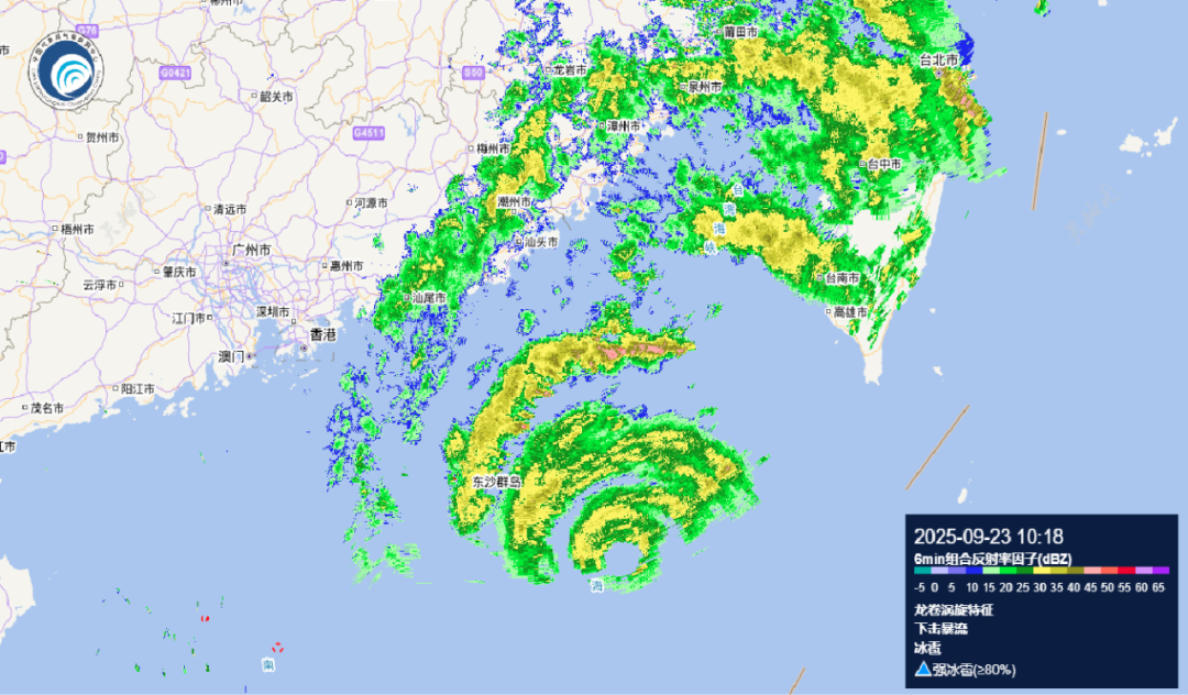 监测结果:23日10时,超强台风“桦加沙”中心西北方向有多螺旋雨带结构,自台风中心向外不断向外移动。外围雨带为台湾、福建等地带来降水影响。