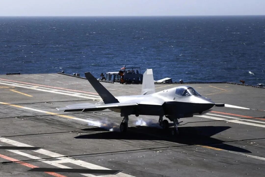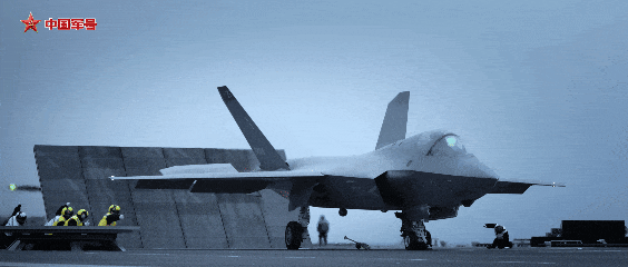 歼-35舰载战斗机在海军福建舰阻拦着舰。图源 / 中国军号