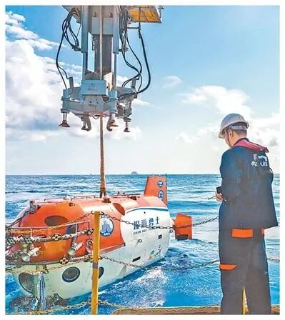 “深海勇士”号载人深潜器布放(资料照片)。