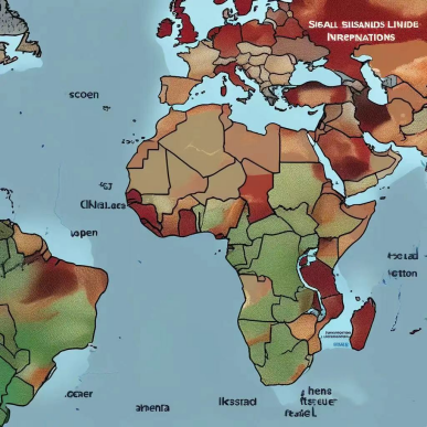 《全球盐水入侵热点地图》——本地图展示了受海平面上升影响而面临盐水入侵问题的岛屿国家。颜色越深的区域表示盐水入侵问题越严重,对当地淡水资源的威胁也越大。
