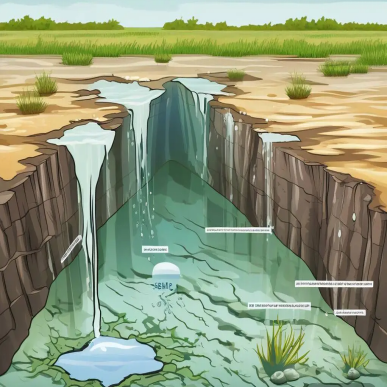《盐水入侵淡水含水层》——当海平面上升,海水中的盐分通过地下渗透进入淡水层,污染了居民的饮用水源和农业灌溉用水。